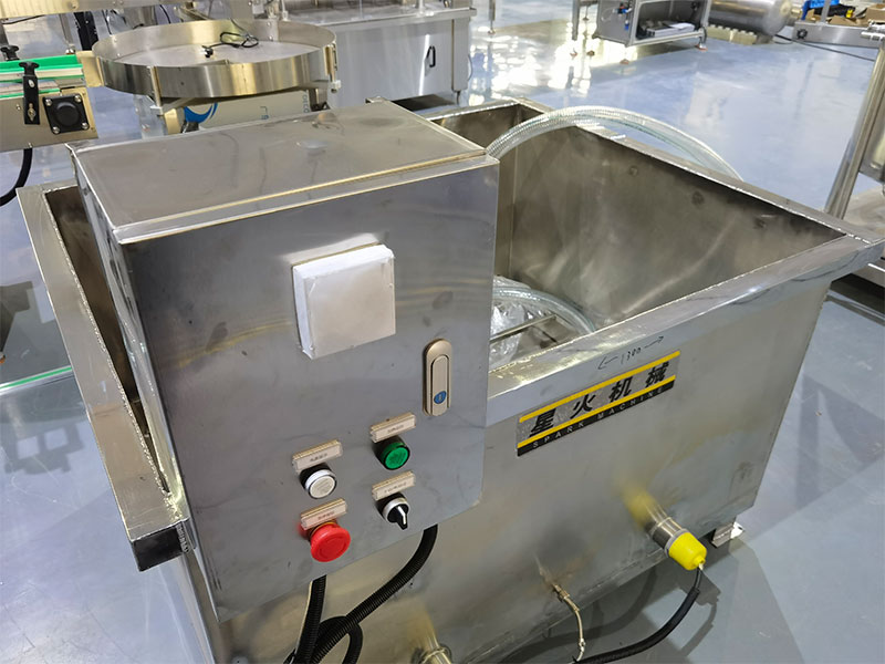 蜂蜜灌裝機(jī)旋蓋生產(chǎn)線整體運(yùn)作模式采用PLC+HMI智能操作原理,通過一鍵式便捷式的操作,可提高蜂蜜從原材料直至成品輸出全部工序,操作人員僅需在觸控屏上選擇相對(duì)應(yīng)的生產(chǎn)規(guī)格,蜂蜜灌裝機(jī)旋蓋生產(chǎn)線可自動(dòng)開始投產(chǎn),為了確保灌裝食材的安全性,這一整套機(jī)械設(shè)備全部采用不銹鋼材質(zhì)打造,不僅擁有良好的密封性和耐腐蝕性,還可以延長設(shè)備的長久使用期限,蜂蜜灌裝機(jī)旋蓋生產(chǎn)線啟動(dòng)后,振動(dòng)電機(jī)帶動(dòng)篩網(wǎng)振動(dòng),使的蜂蜜快速通過網(wǎng)篩,經(jīng)過篩選后的蜂蜜需經(jīng)過加熱才能保持流動(dòng)狀態(tài),以便于后續(xù)的灌裝,在進(jìn)入投產(chǎn)工序時(shí),理瓶機(jī)開始自動(dòng)整理雜亂的瓶子排列程序,輸送帶則會(huì)帶動(dòng)瓶子進(jìn)入灌裝區(qū)域,在灌裝區(qū)域內(nèi)紅外感應(yīng)控制器將會(huì)實(shí)時(shí)檢測(cè)瓶子的進(jìn)出,檢測(cè)到容器口時(shí),灌裝頭下降,已經(jīng)被提煉好的蜂蜜將會(huì)在全封閉式的狀態(tài)下快速充填進(jìn)瓶、旋蓋、貼標(biāo)的生產(chǎn)工序。