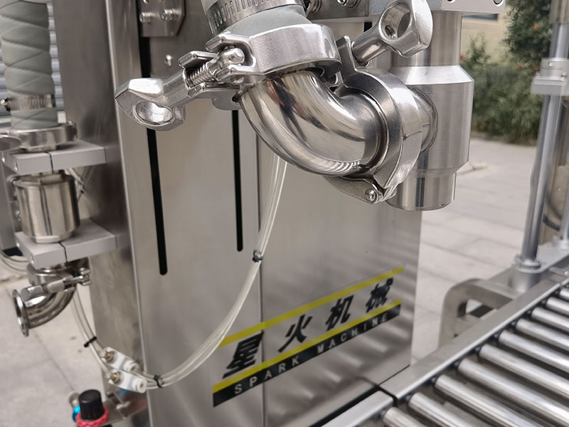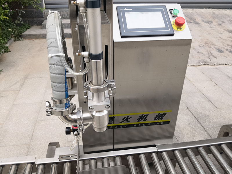 工作人員將所需灌裝的容器放置在稱臺上,確保桶口朝上,并在25升灌裝旋蓋設(shè)備上進(jìn)行參數(shù)規(guī)格的設(shè)定,提前備至好灌裝原材料,系統(tǒng)將會自動(dòng)偵測到桶的定位,灌裝槍智能插入桶口,自動(dòng)去皮后,打開灌裝槍以及球閥組開始進(jìn)行灌裝,在灌裝過程中,化工液體稱重灌裝機(jī)會通過大小球閥組以及灌槍的分段控制,實(shí)現(xiàn)快速、精準(zhǔn)的統(tǒng)一化克重信息,在化工液體達(dá)到預(yù)設(shè)的目標(biāo)值時(shí),灌槍將自動(dòng)關(guān)閉并升至桶外,此時(shí)滴漏盤承接灌裝頭底部的漏液,保障物料的不浪費(fèi)和容器桶的干凈整機(jī),隨之25升灌裝旋蓋設(shè)備將進(jìn)入自動(dòng)旋蓋區(qū)域。