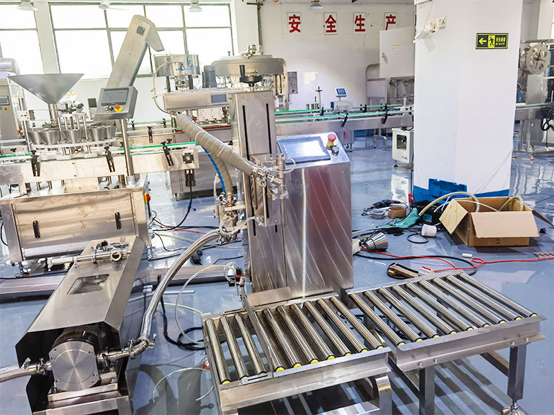 大型化工液體灌裝設(shè)備-稱(chēng)重式防爆灌裝旋蓋機(jī)